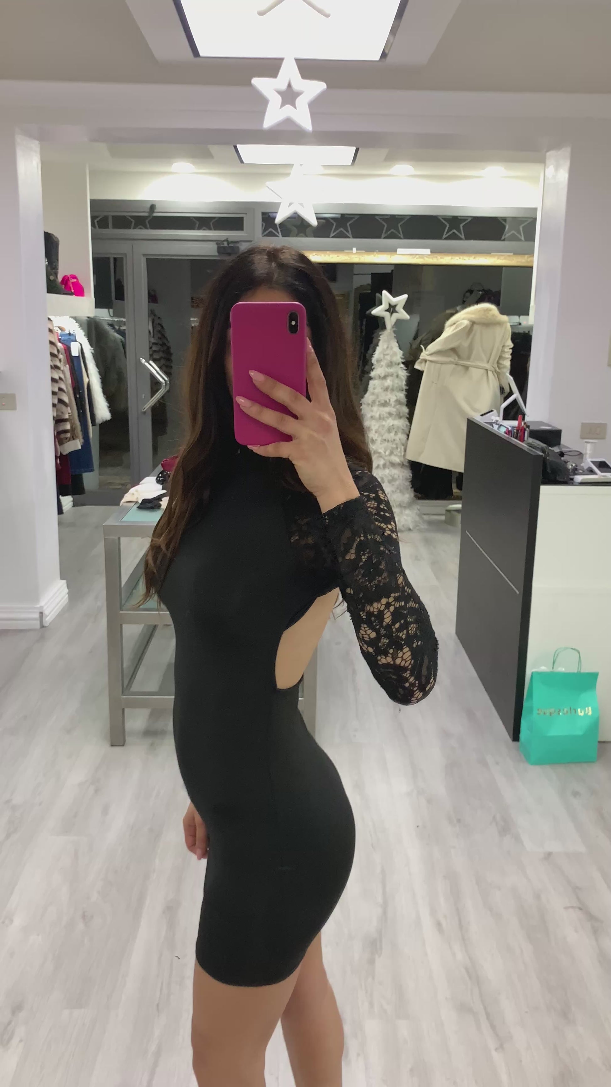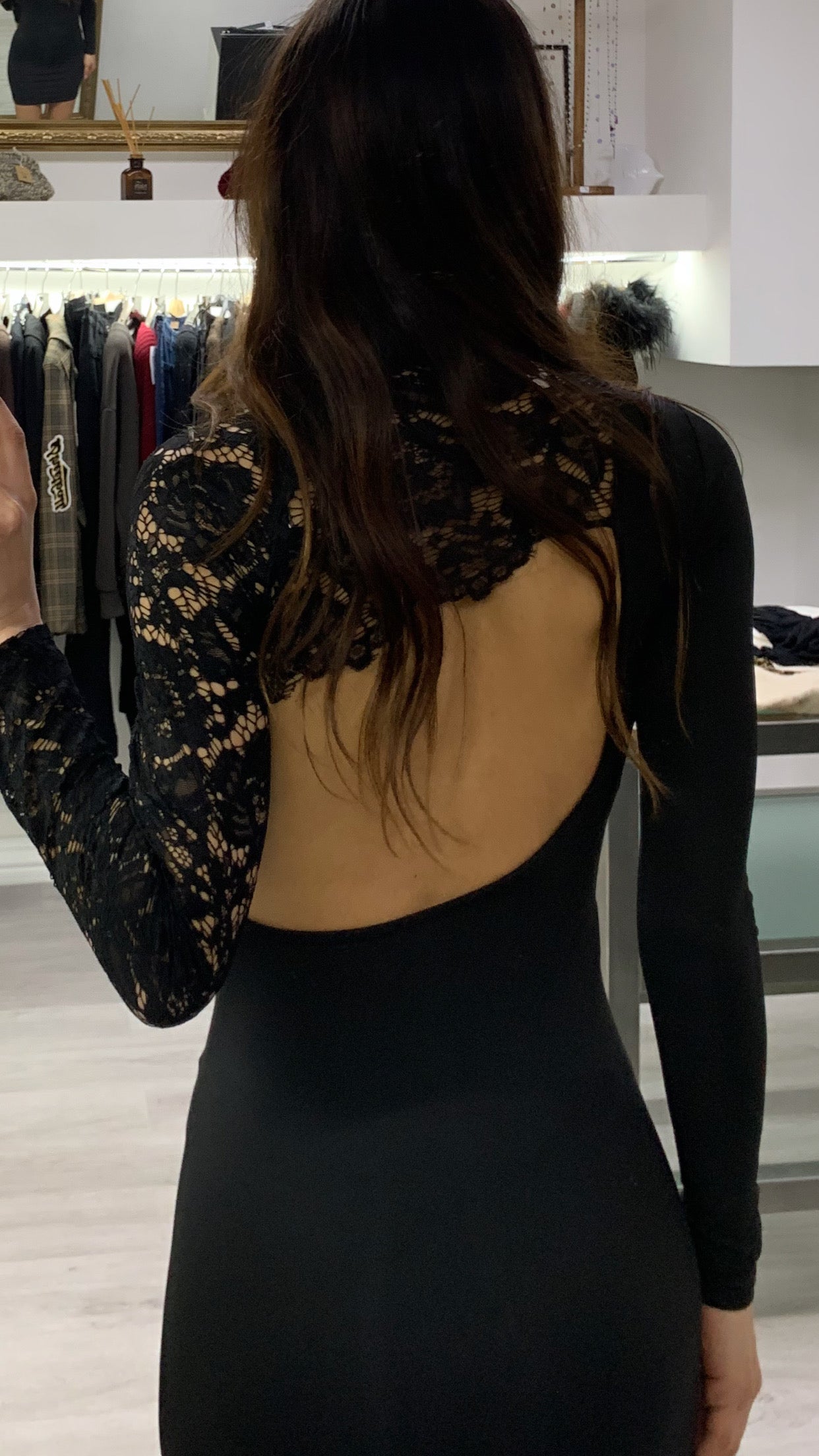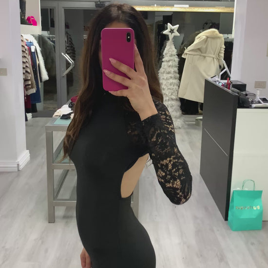 Abito in lycra elasticizzata e inserti in pizzo scollatura sulla schiena Taglia unica