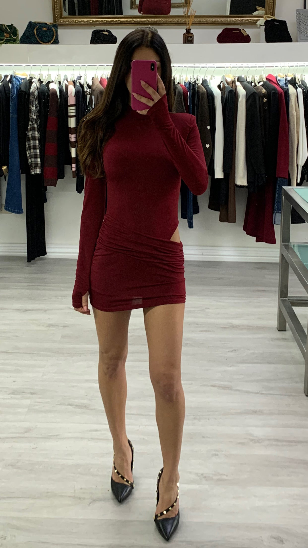 Abito corto elasticizzato con dettaglio cutout a manica lunga con spalline imbottite Taglia unica