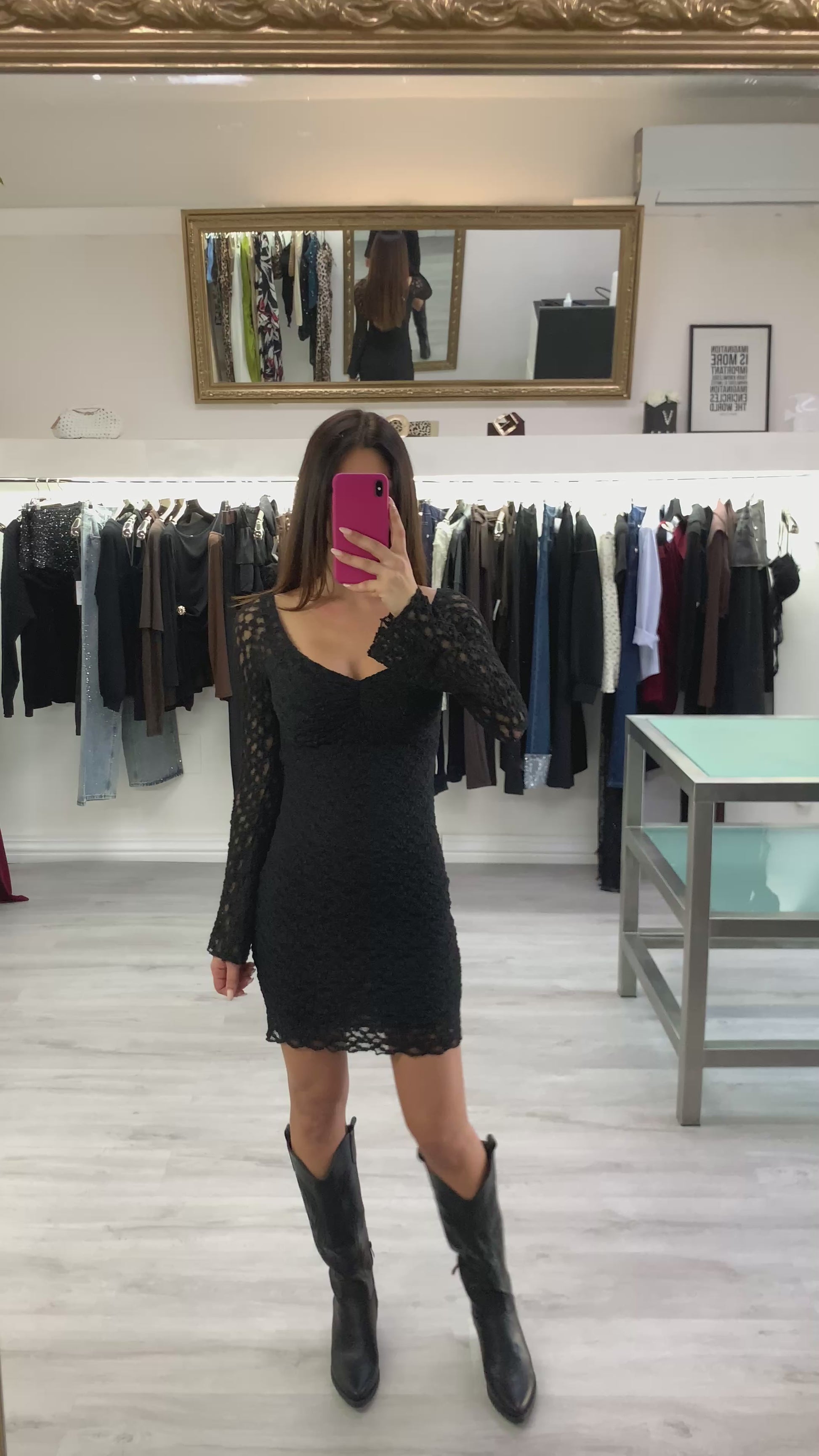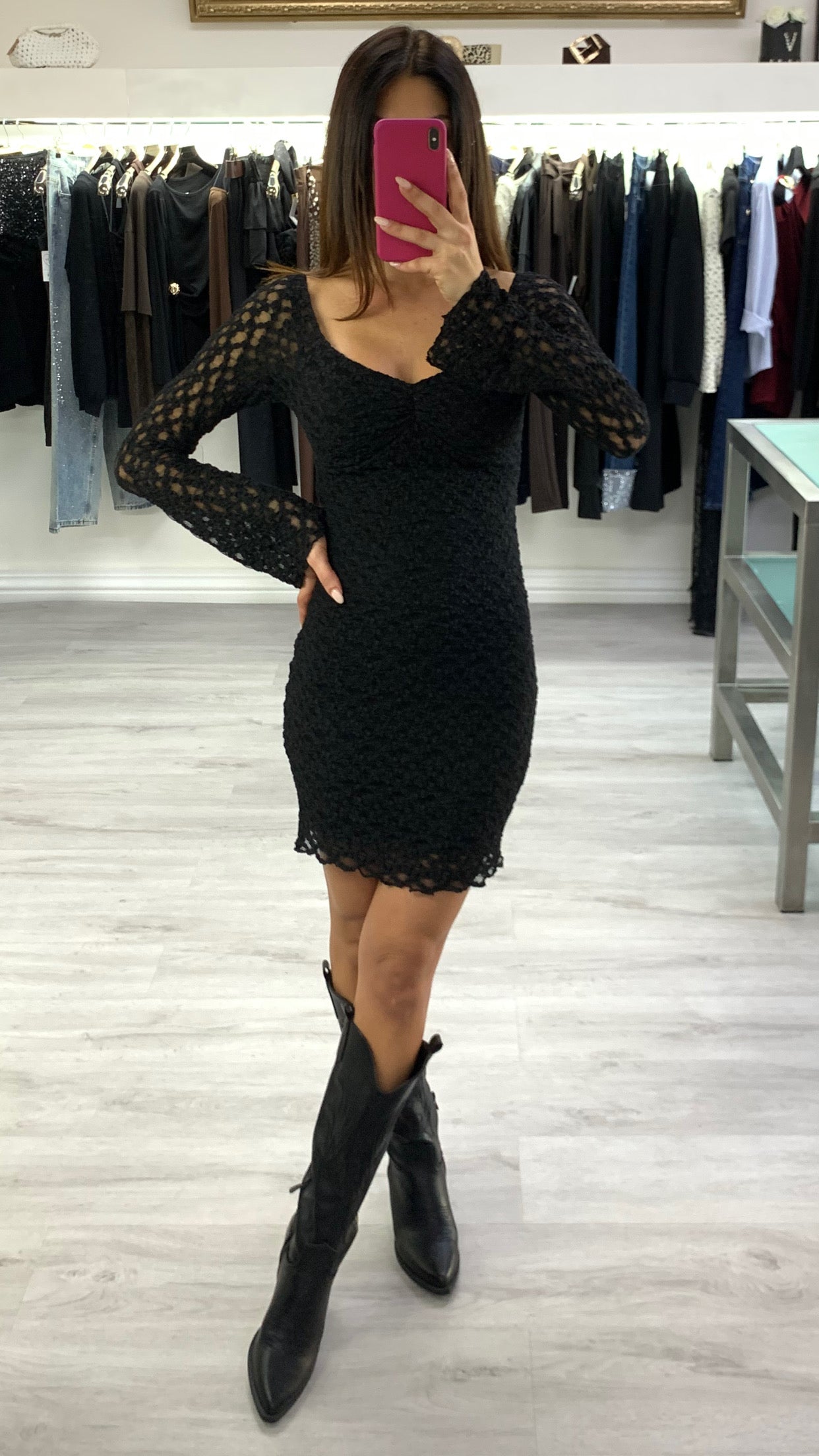 Abito in pizzo elasticizzato a manica lunga Taglia unica