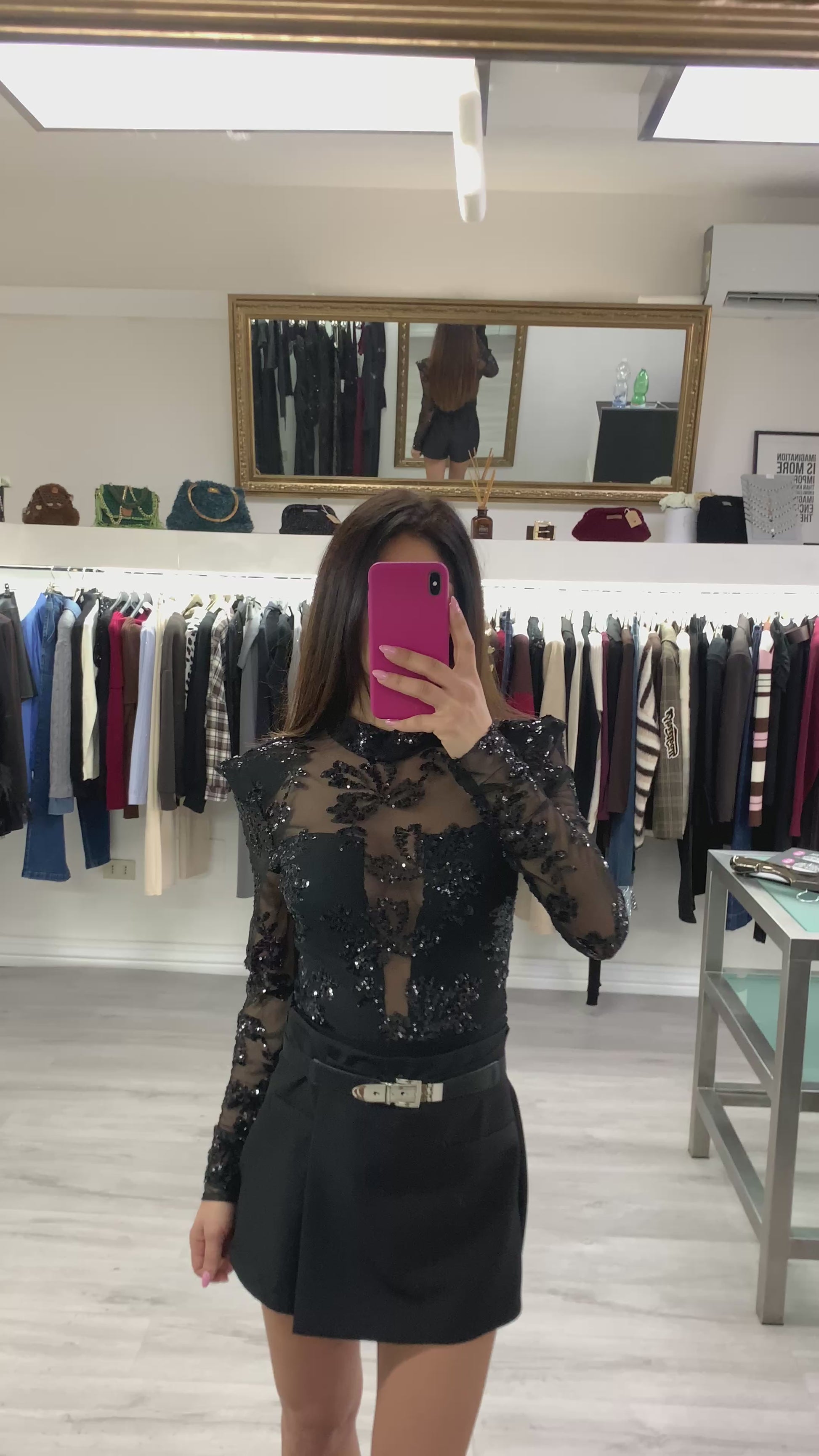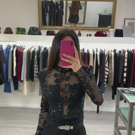 Body in tulle e paillettes con spalline imbottite Taglia unica