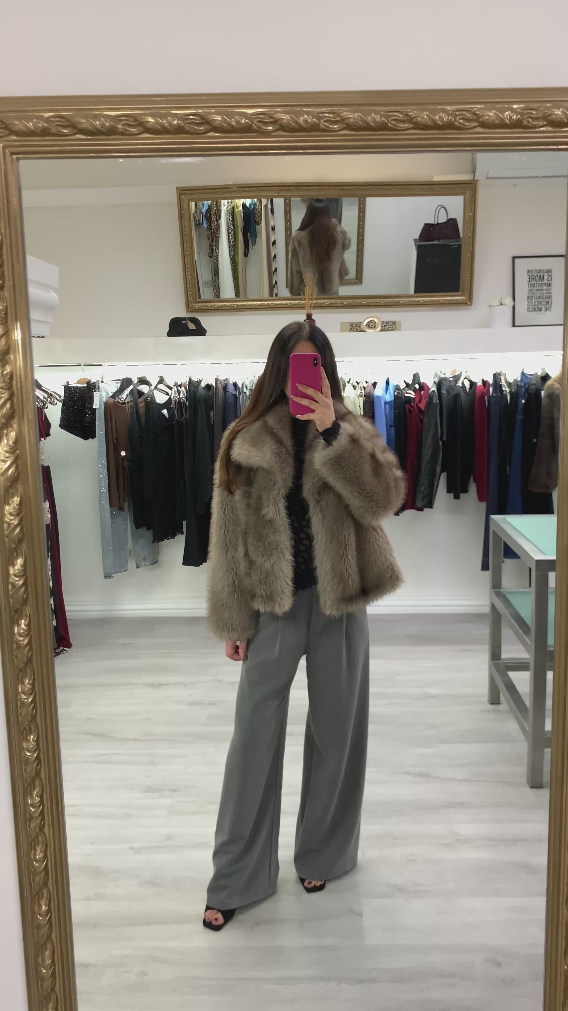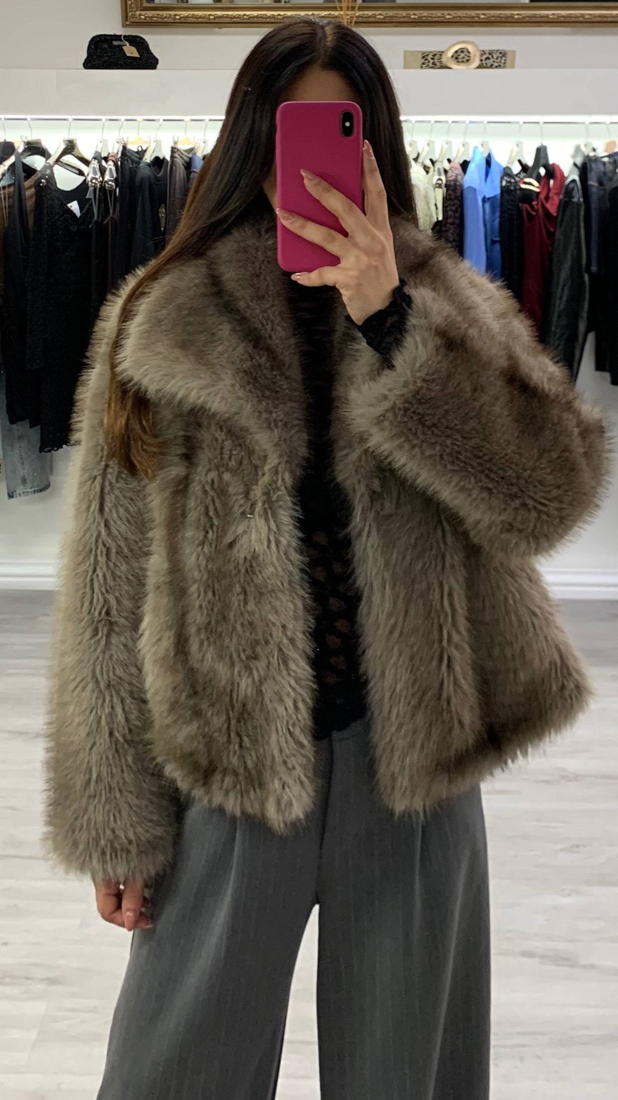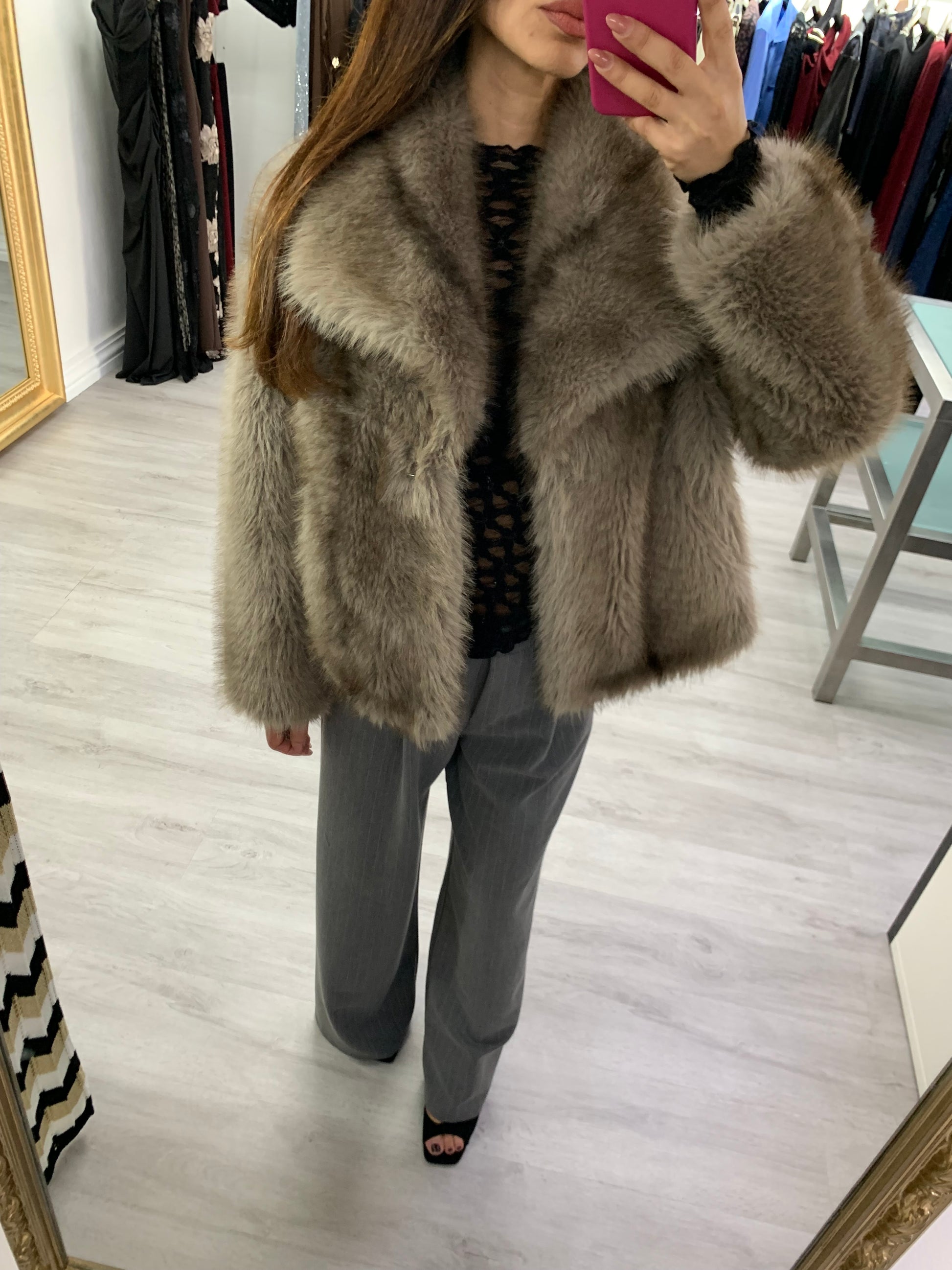 Ecopelliccia con collo rovesciato chiusura a due ganci con tasche Taglia unica