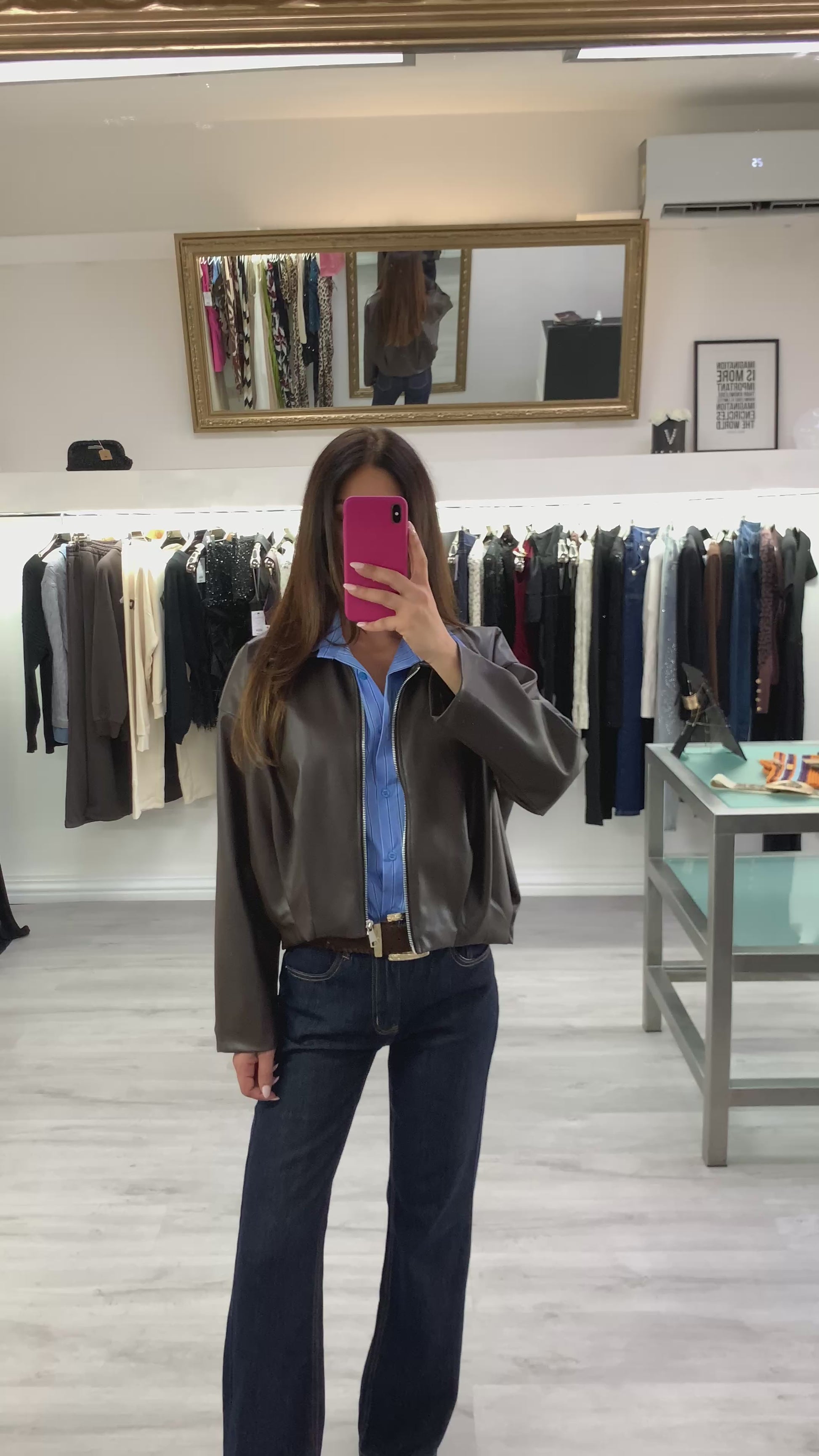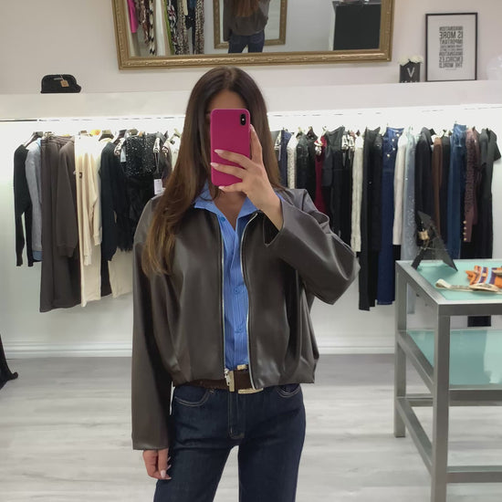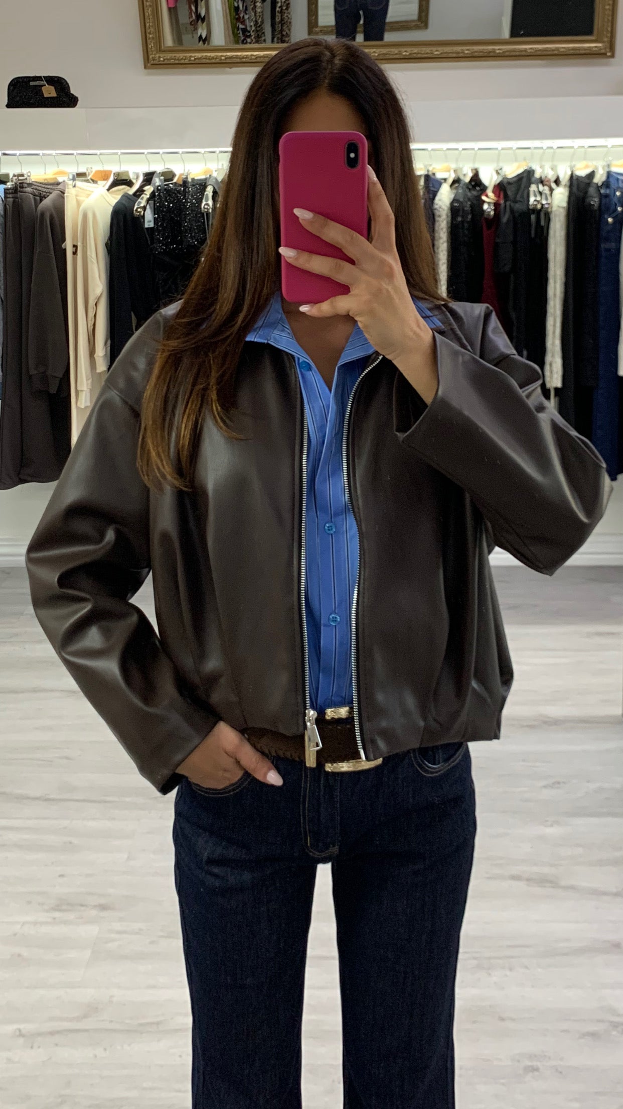 Bomber in ecopelle marrone con cerniera Taglia unica