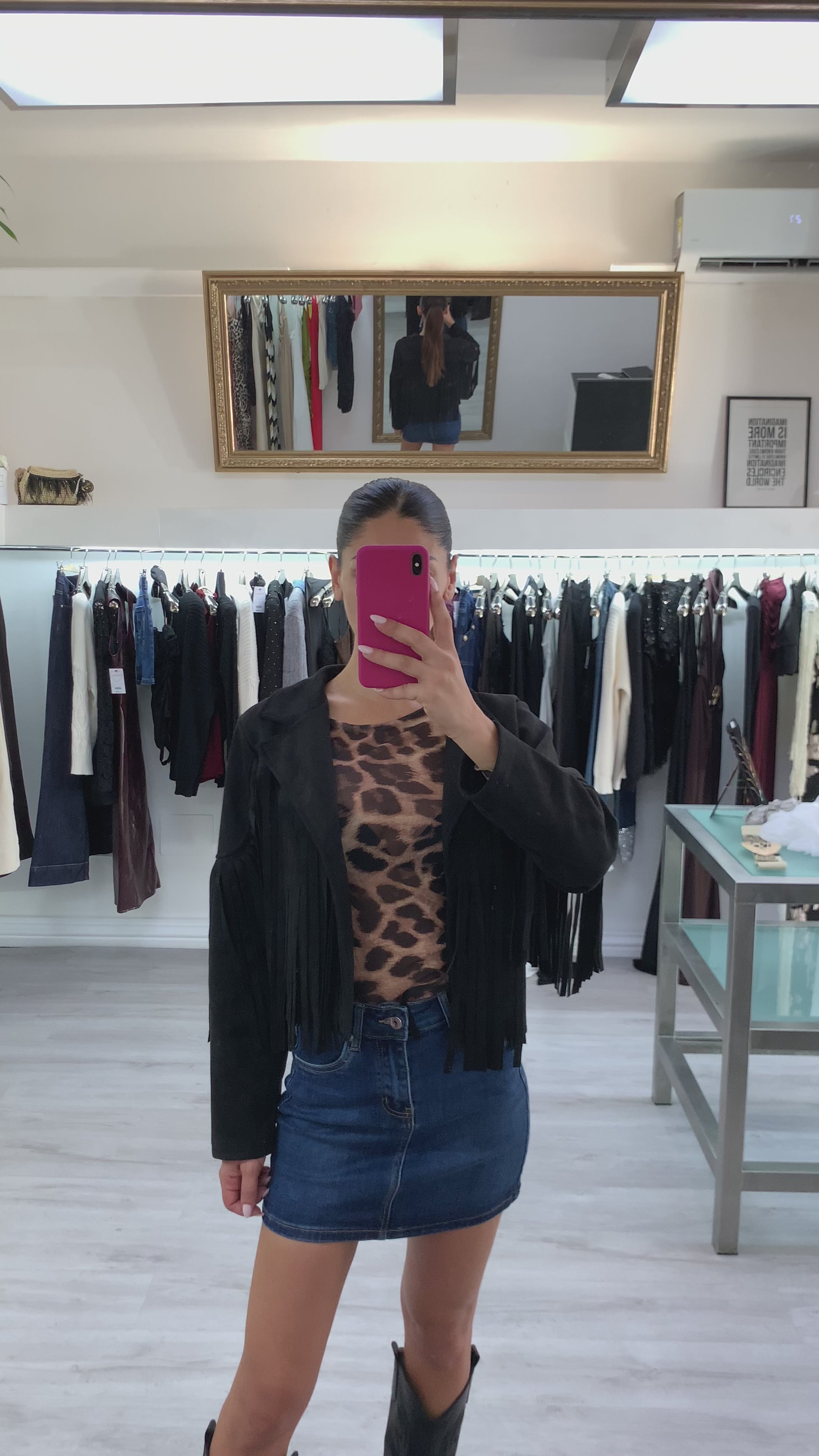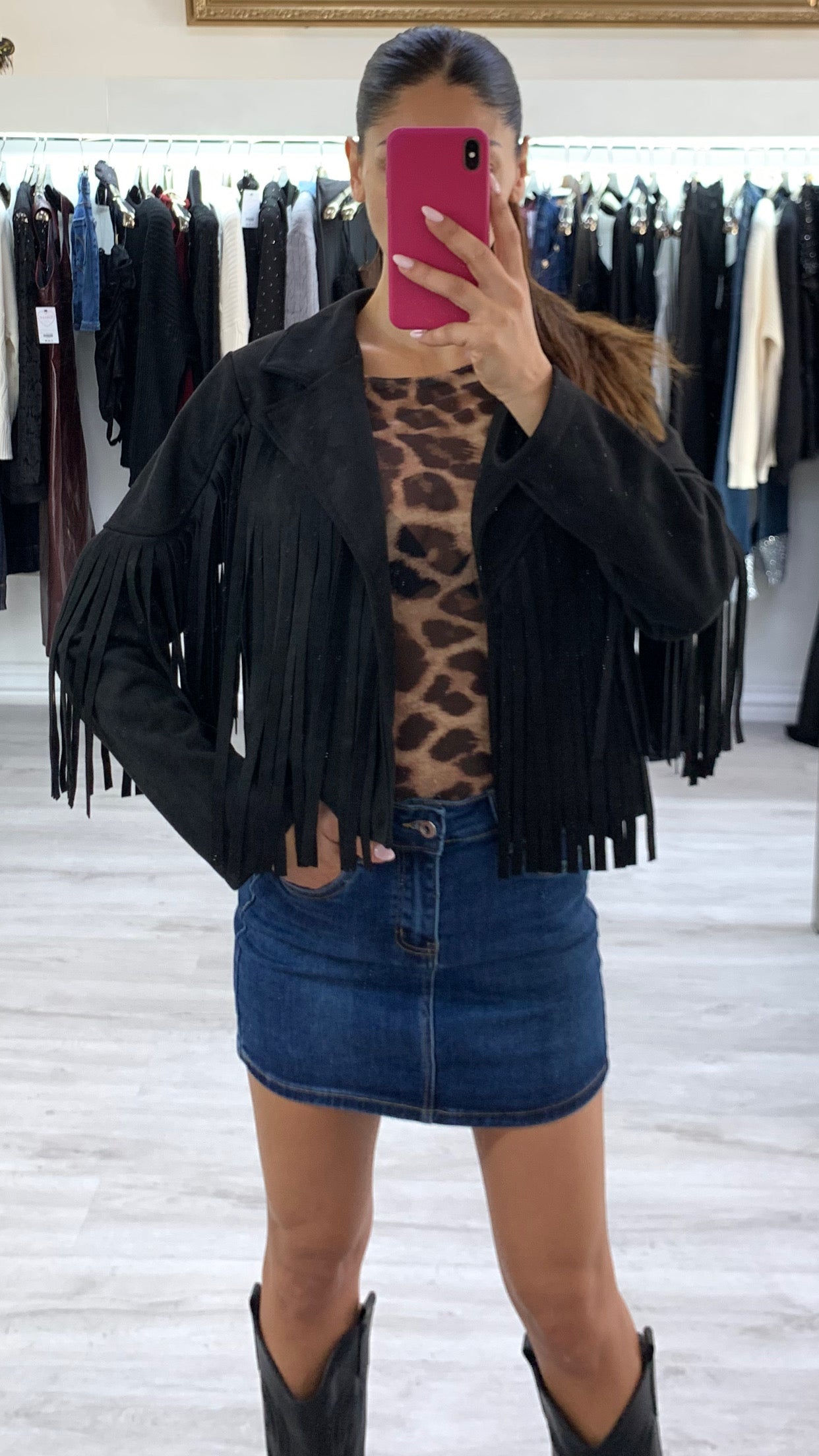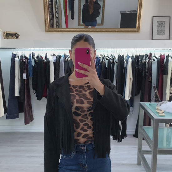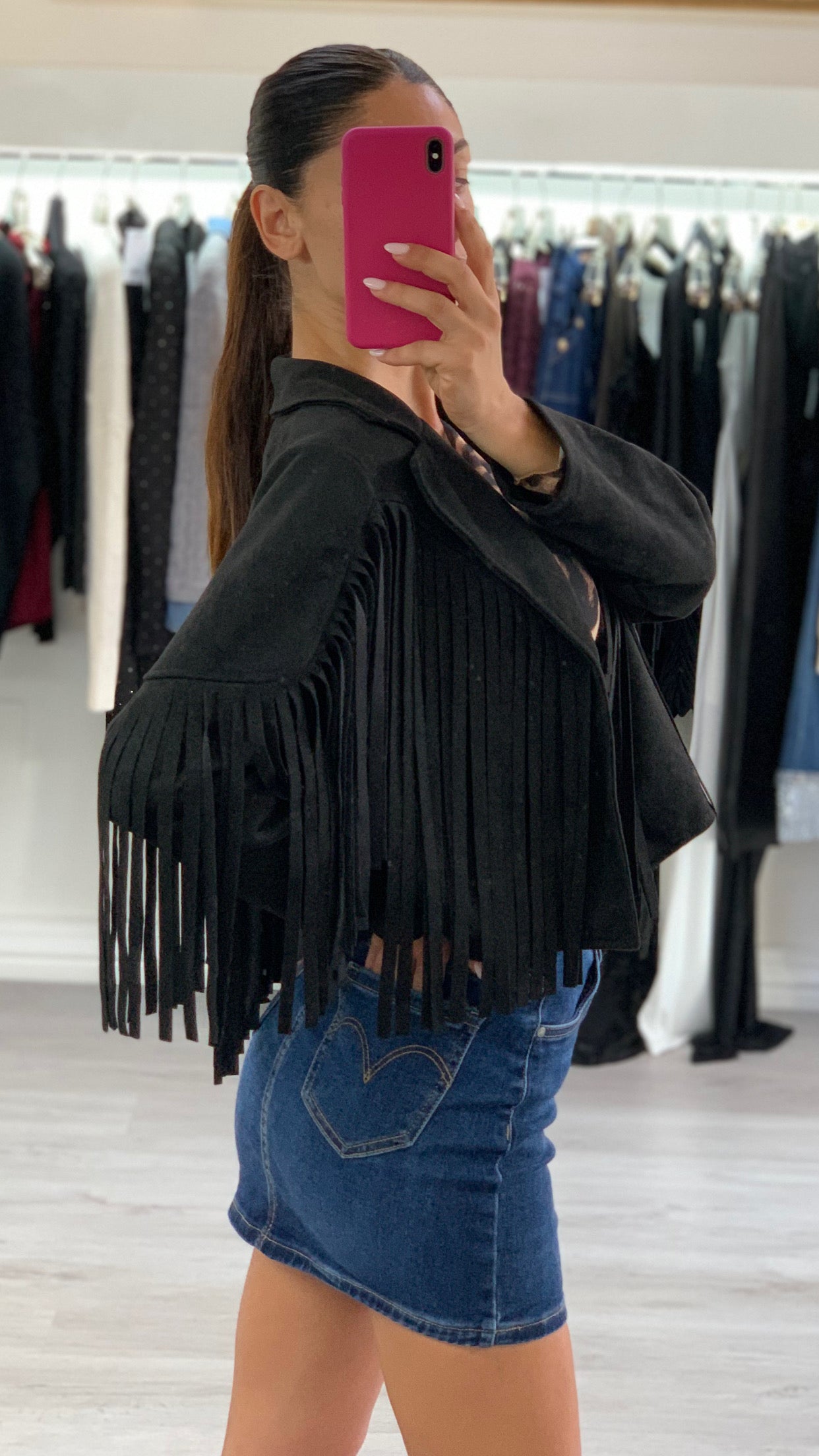 Giubbotto con le frange in ecopelle scamosciata colore nero Taglia unica