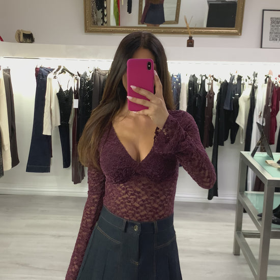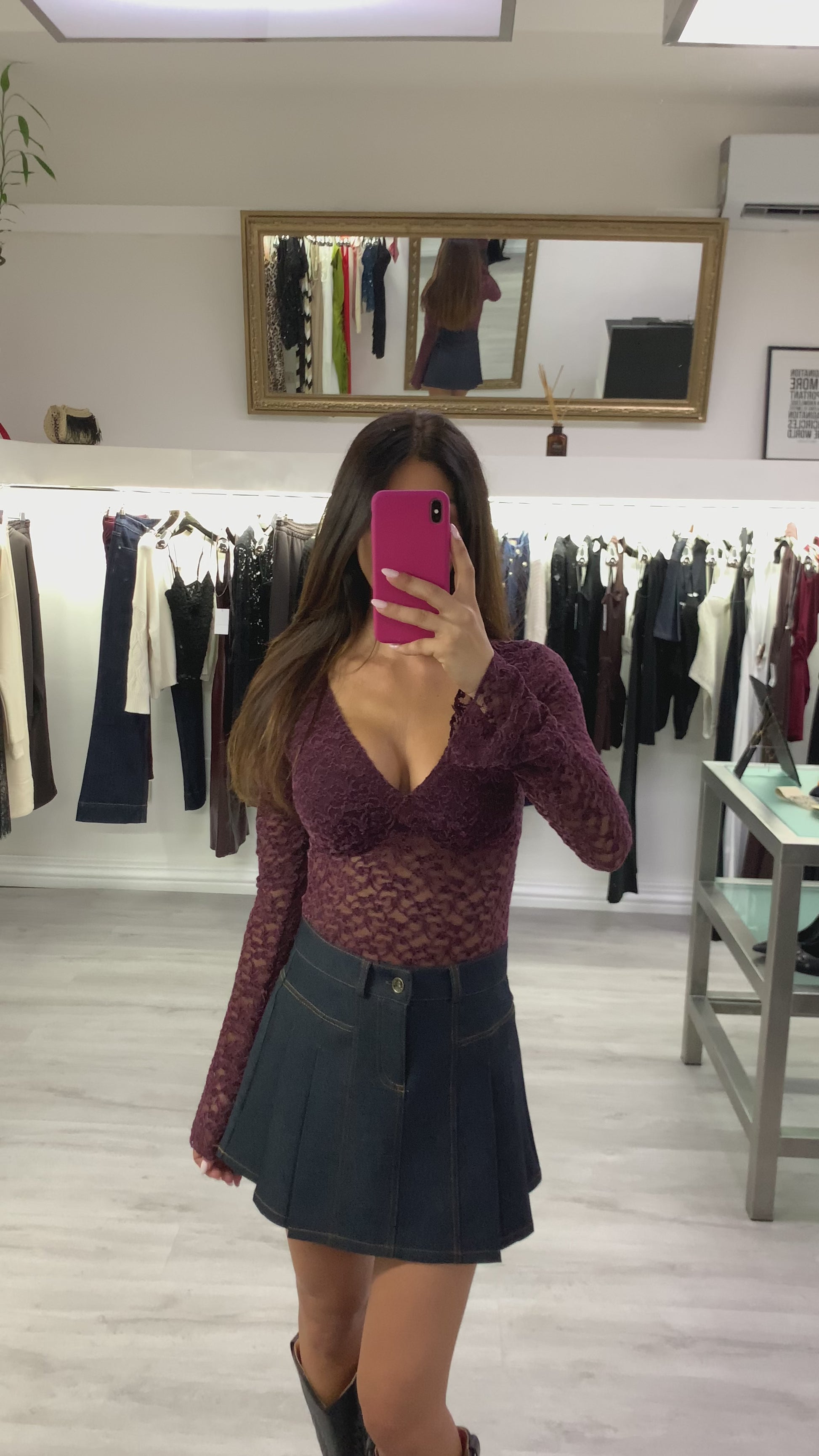 Gonna a pieghe (con sotto pantaloncino) in jeans scuro con cuciture a contrasto marrone chiaro