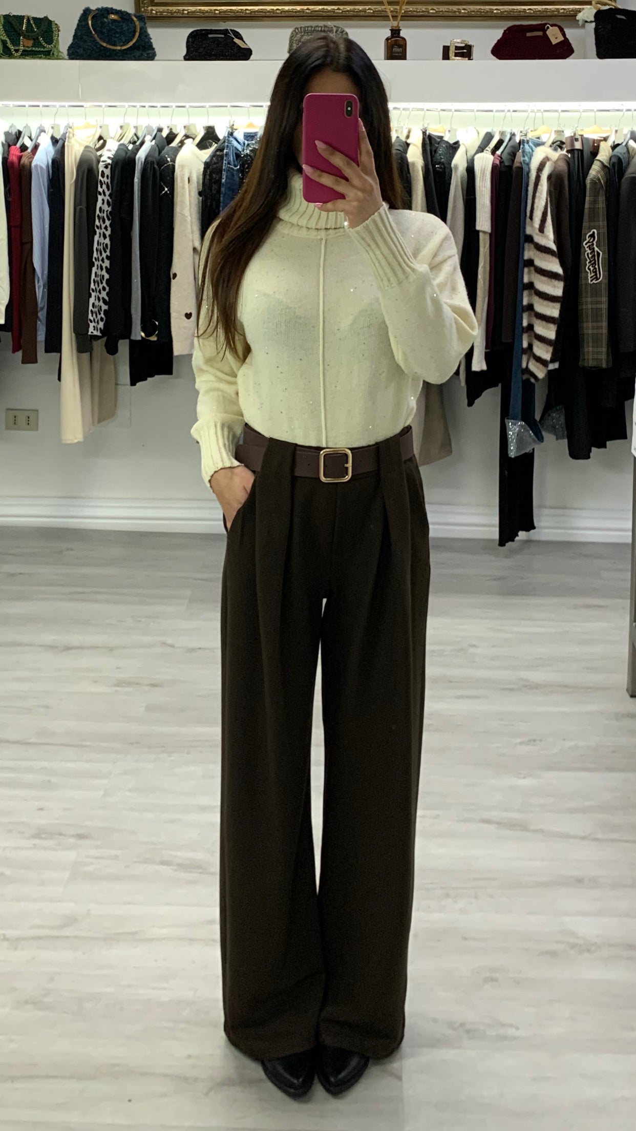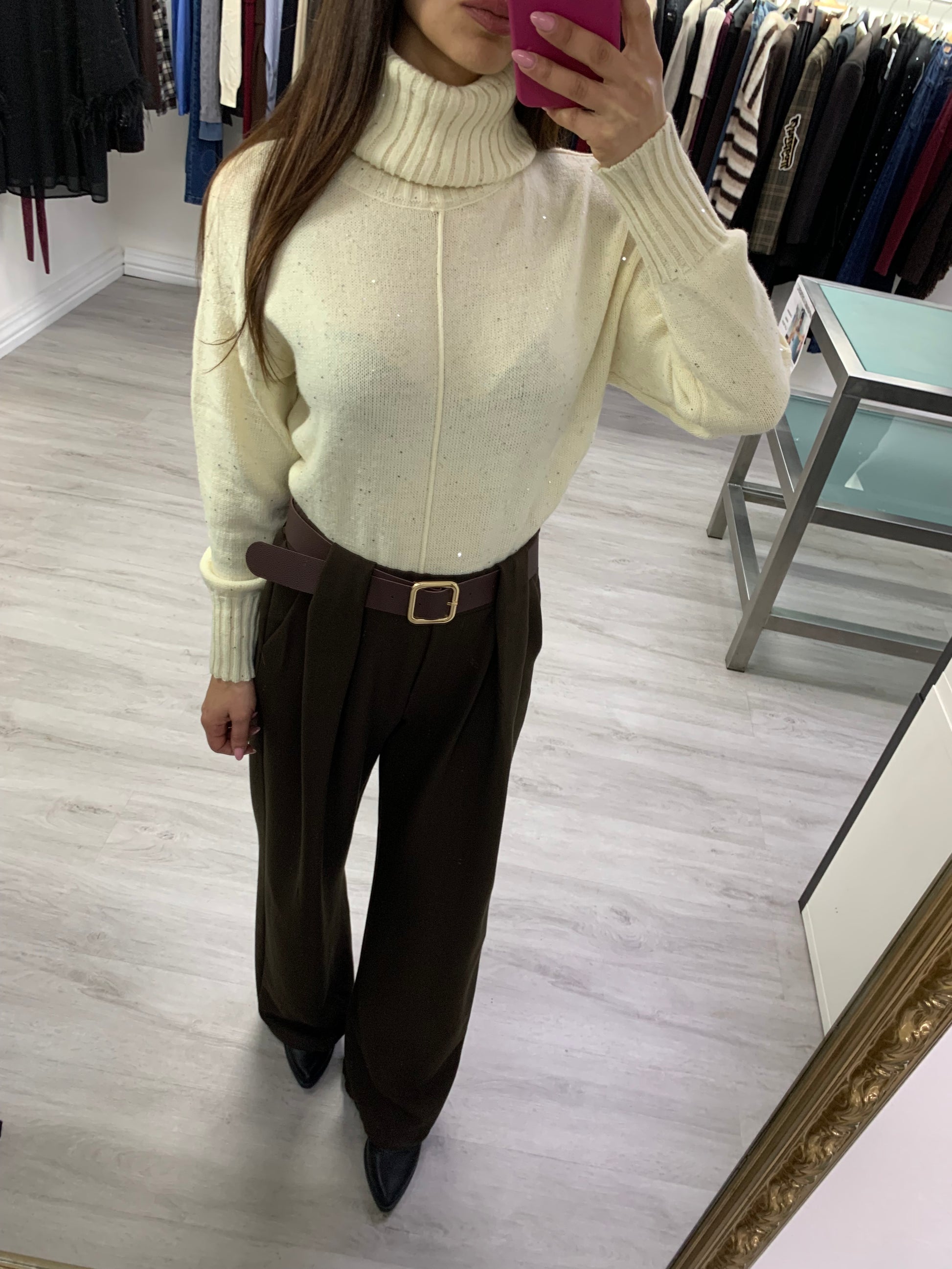 Maglione colore panna a collo alto con micro paillettes argento Taglia unica