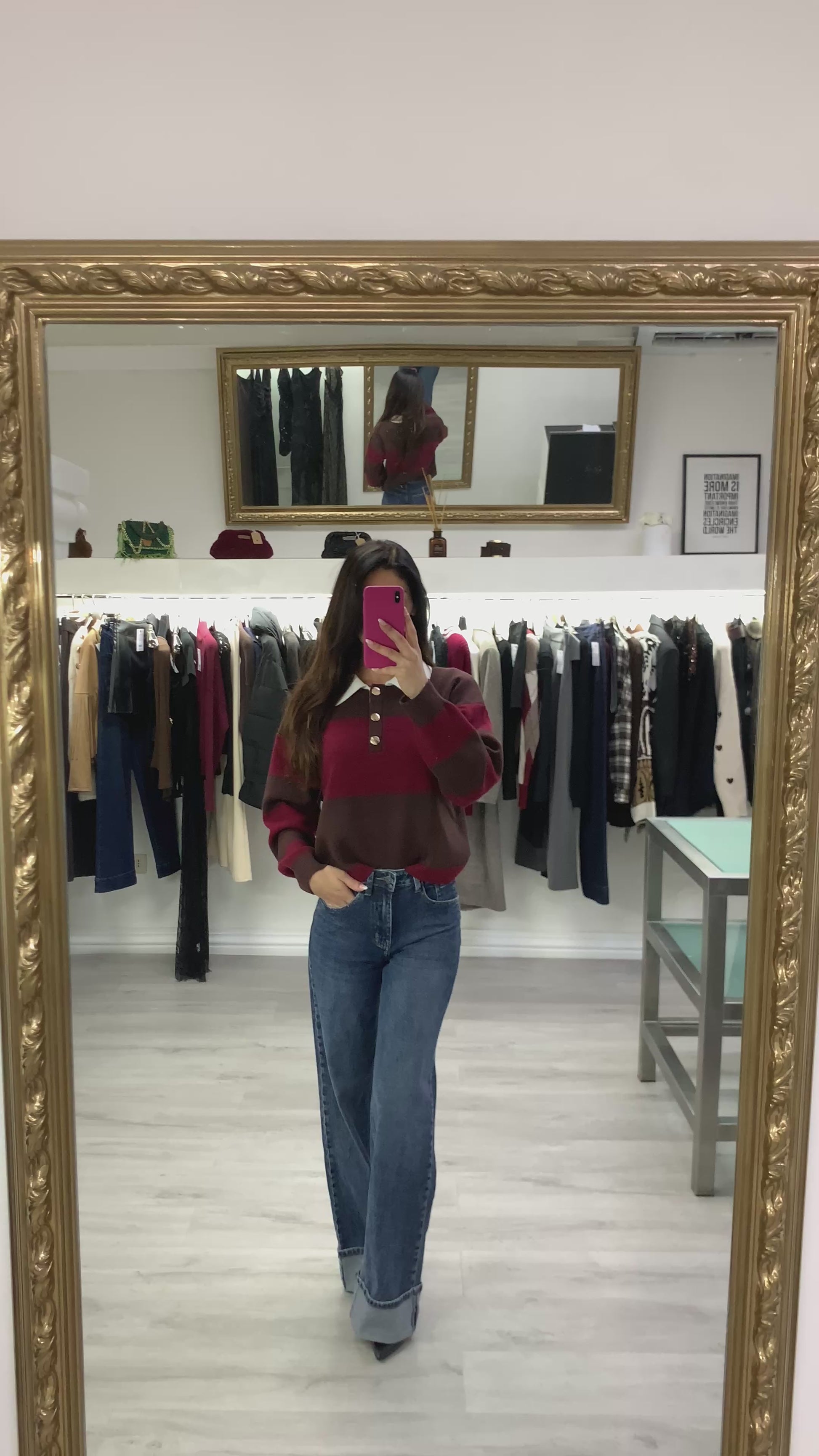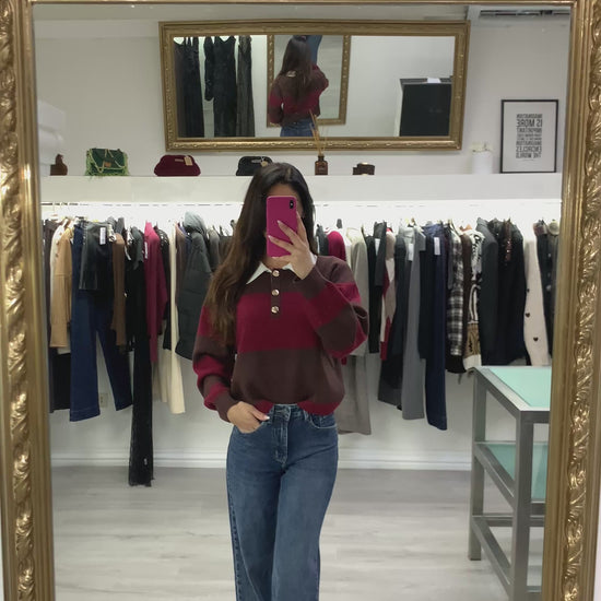 Maglione modello polo a righe marrone e bordeaux Taglia unica