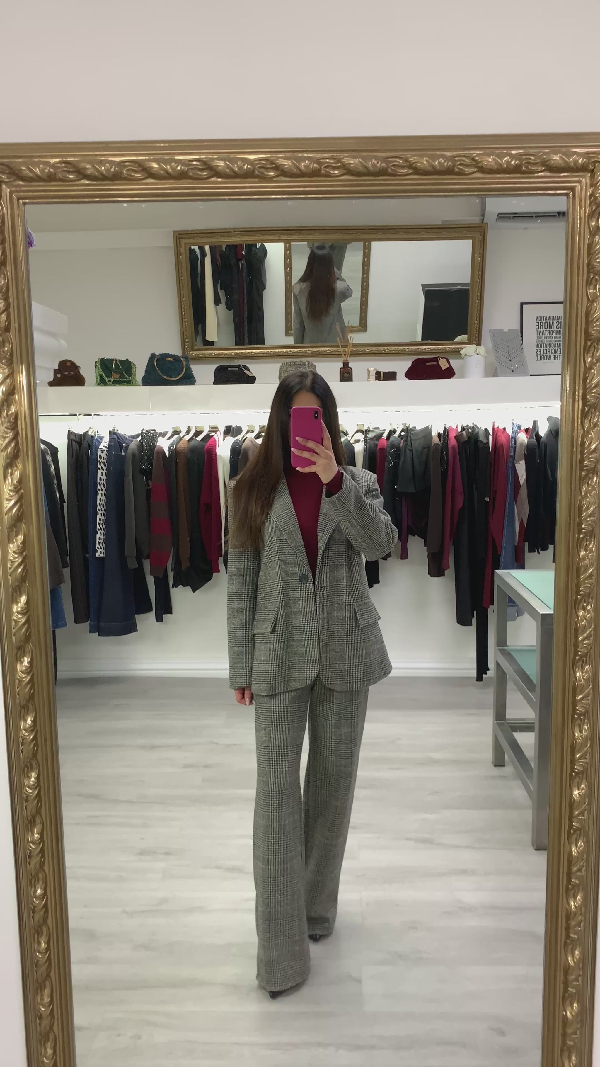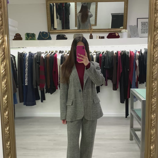 Tailleur composto da giacca e pantalone a quadri tessuto invernale Taglia unica