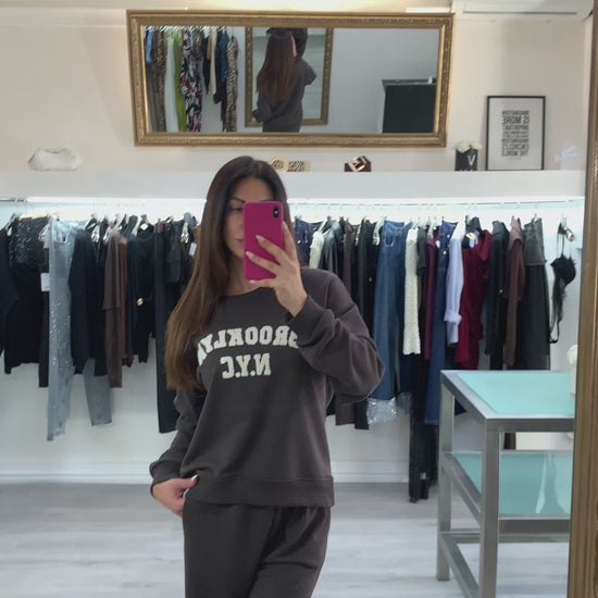 Tuta composta da felpa e pantalone garzati colore marrone Taglia unica