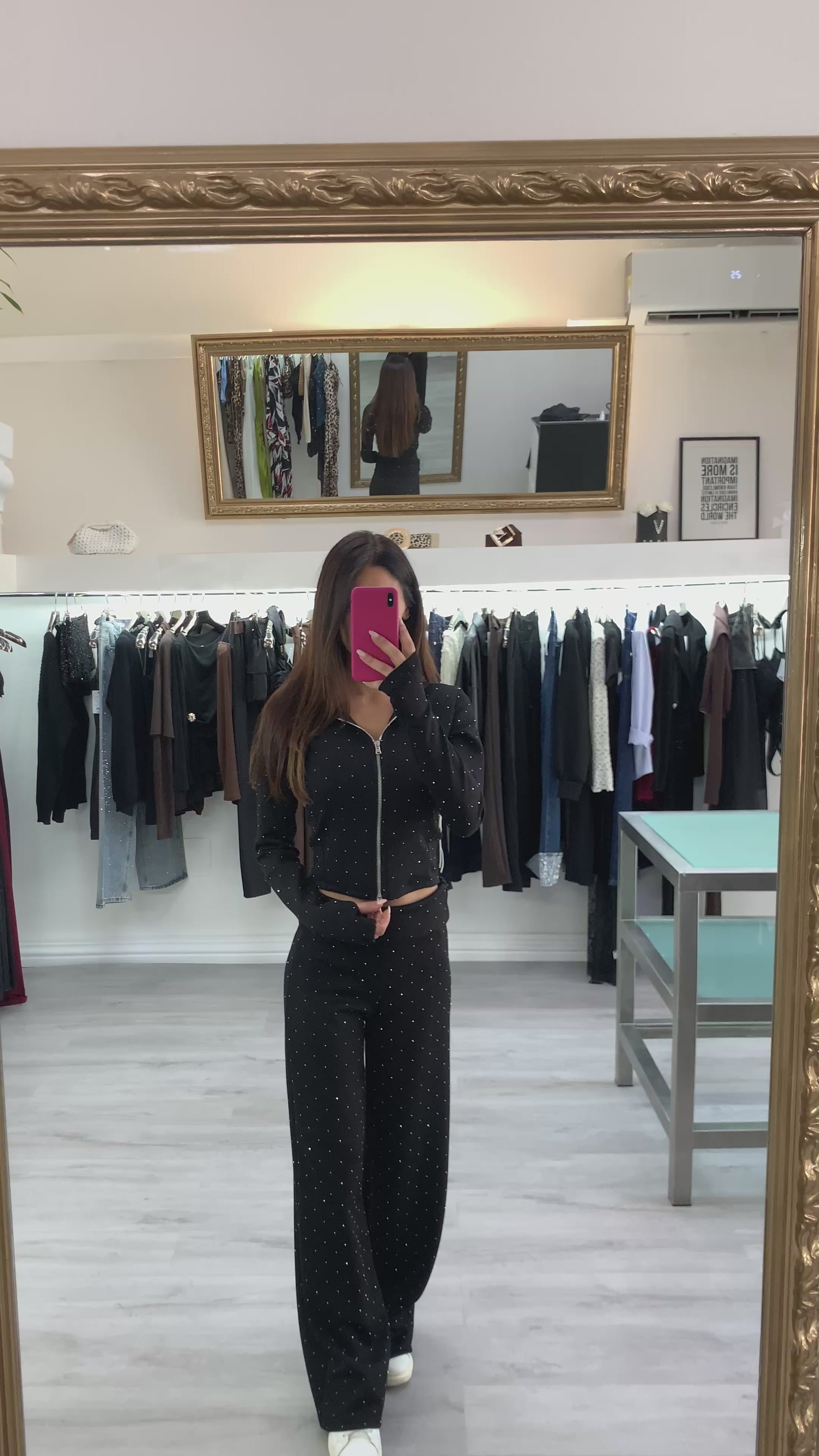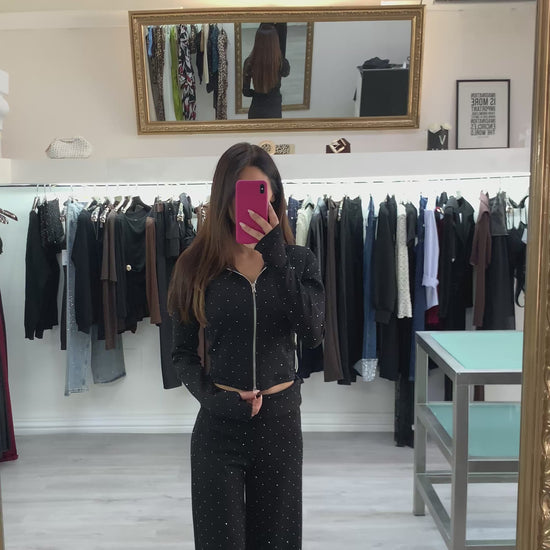 Felpa nera elasticizzata con brillantini chiusura cerniera Taglia unica